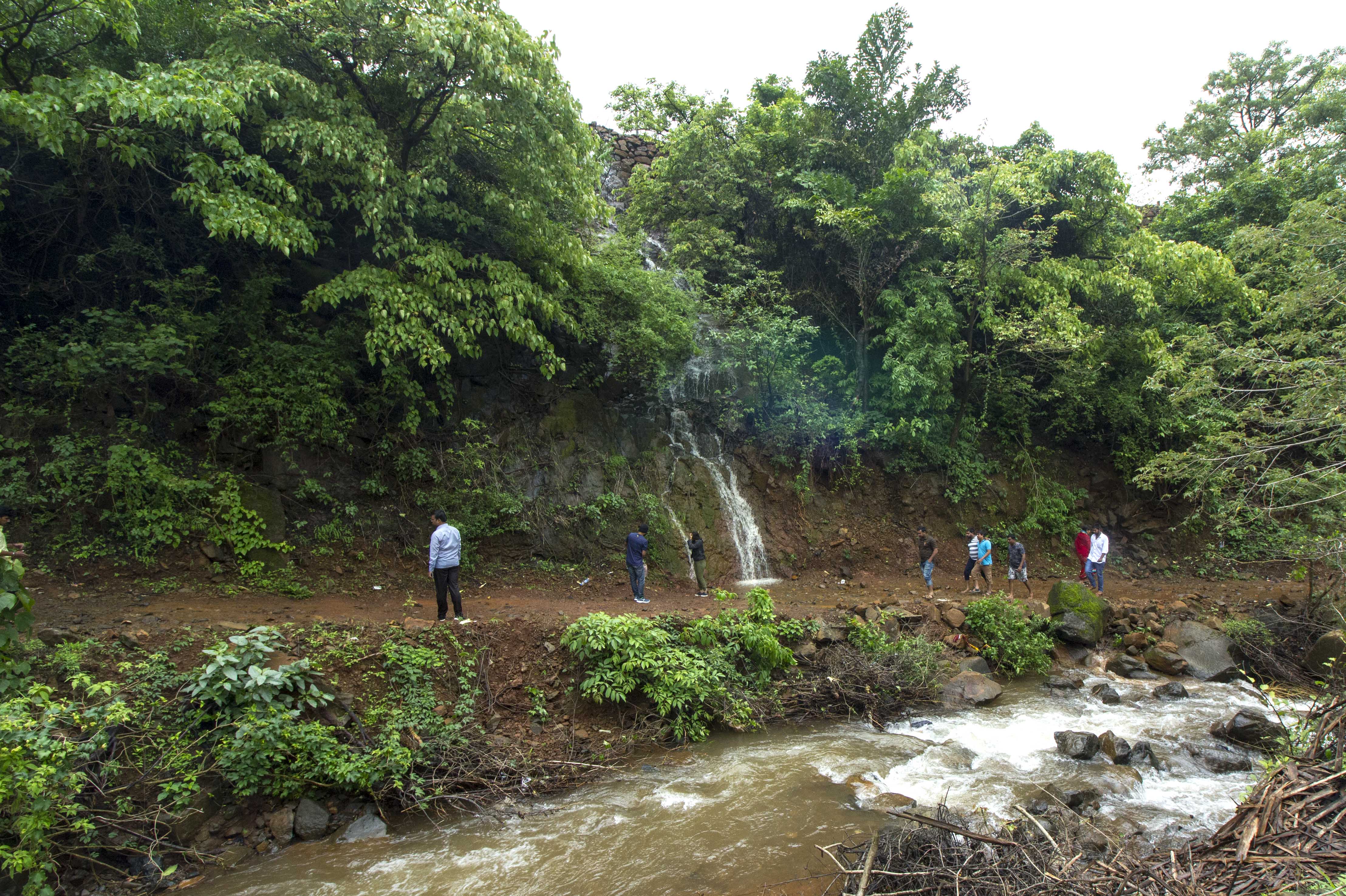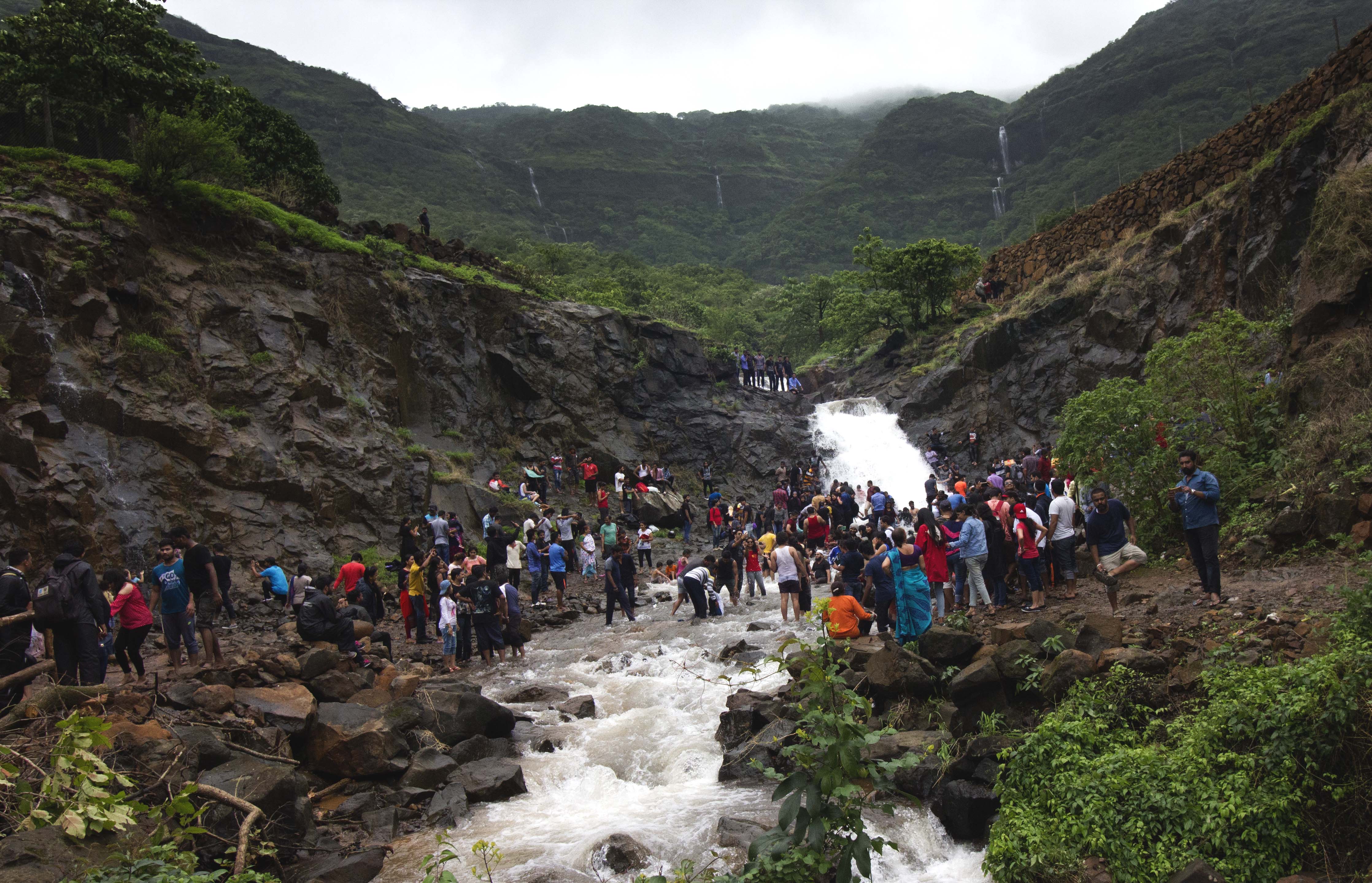 You can see the tourists enjoying the famous waterfall of Tamhini.