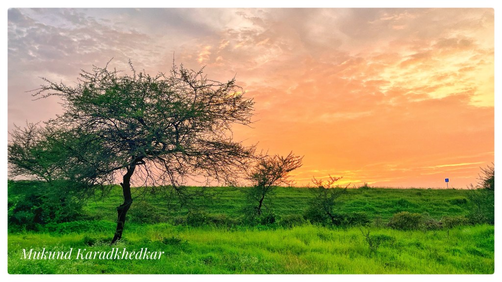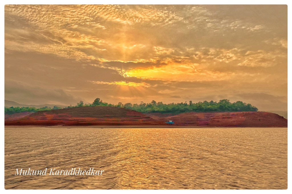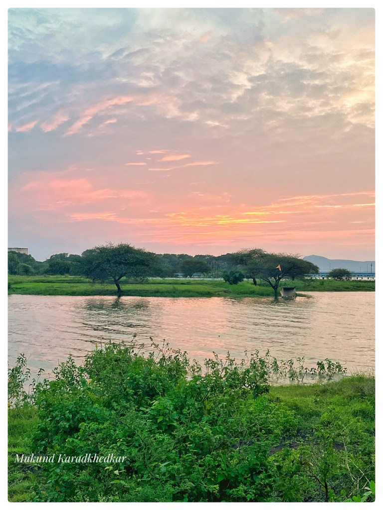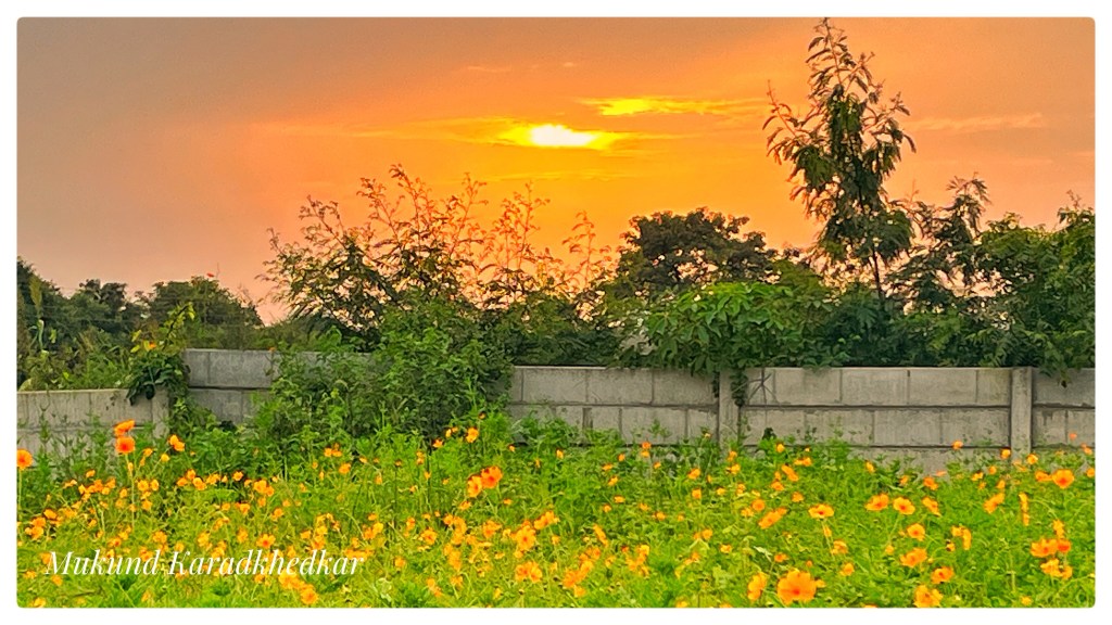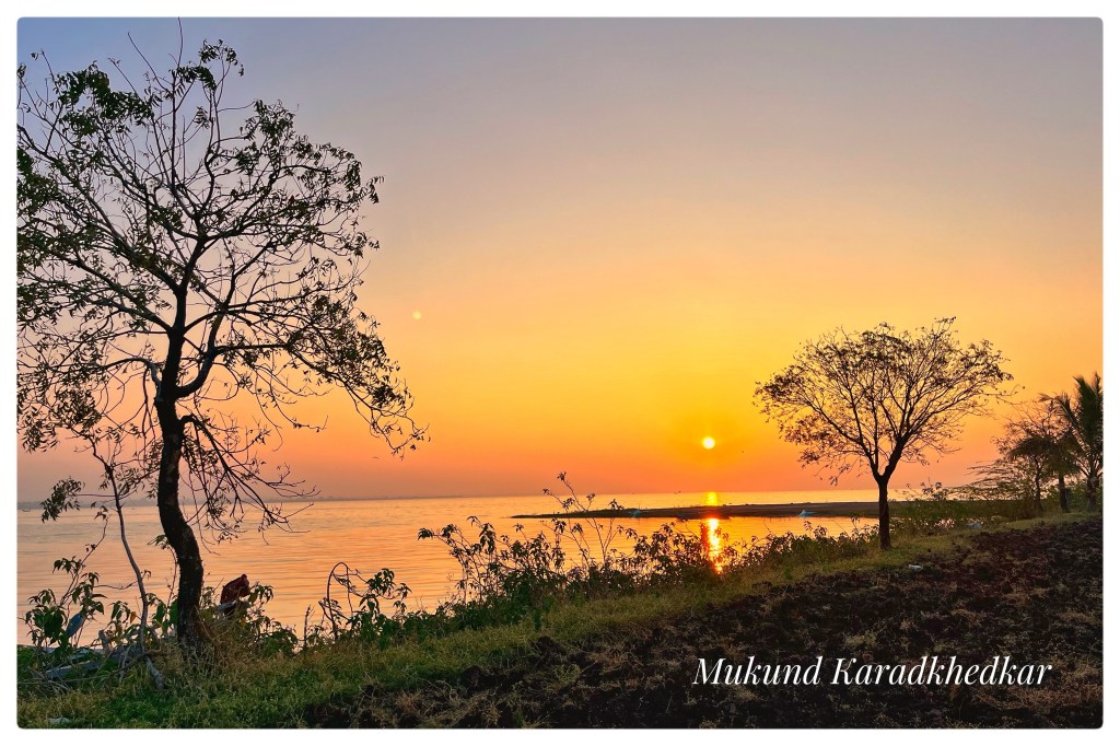 It is technically difficult to capture this beautiful moment as it feels within. If you only click the setting Sun, it looks blonde. The composition makes it appealing. Sky colours just after the sunset are truly beautiful.