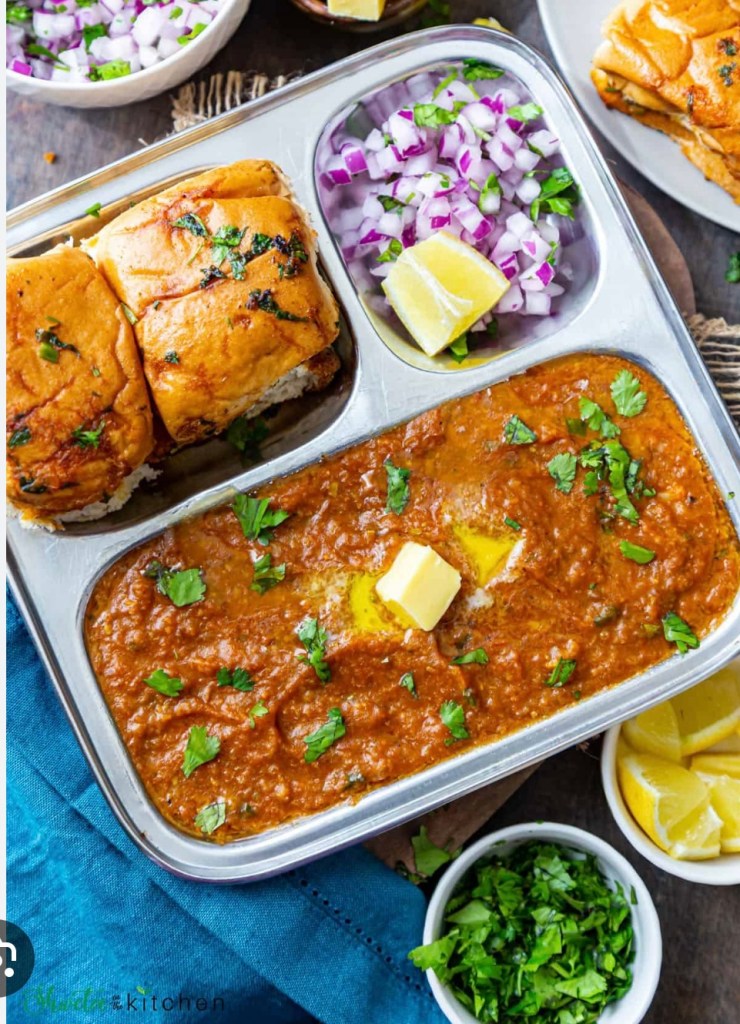 Another tangy preparation which everyone in the family would relish on is Pav Bhaji. This is mixed vegetables cooked together and smashed with tangy spices. And it is served with crisply roasted bread. This absolutely awesome dish many families in India loves.
