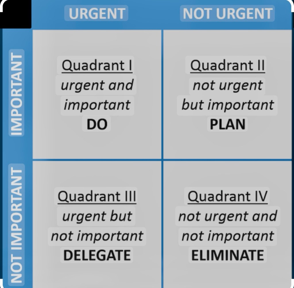 It is good idea to categorise the tasks as Urgent and Important. You can also use the quadrant to plot these tasks. Refer the figure below :