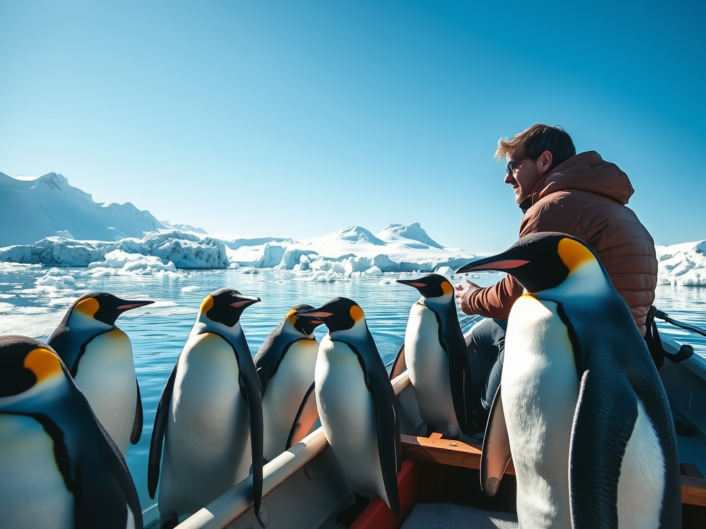 The captain said we have arrived in Antartica and now you will have to travel with small boats. Both of them got into the small boat for further travelling. Raju was so happy to see snow everywhere and the big holders of snow. He was looking around at the Penguins and snow cladded mountains. He was fully excited. And then Vasant started throwing water on him. It was too cold but Vasant was still playing with water and splashing water on Raju.