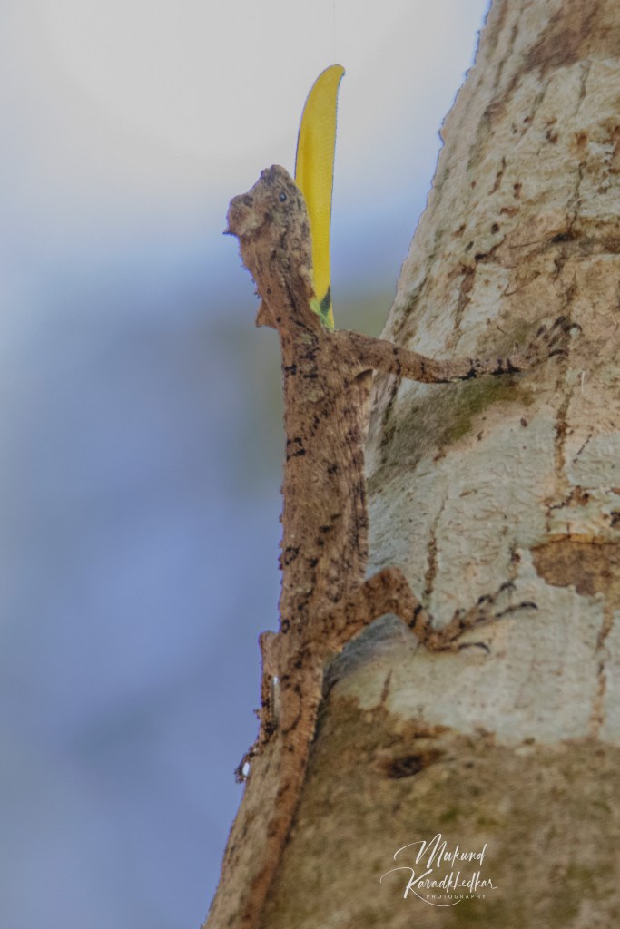 The image shows a Indian Flying Lizard. These Lizards are known for their ability to glide between trees using specialised membranes called patagia.