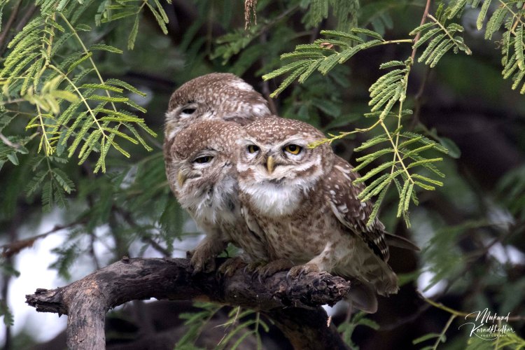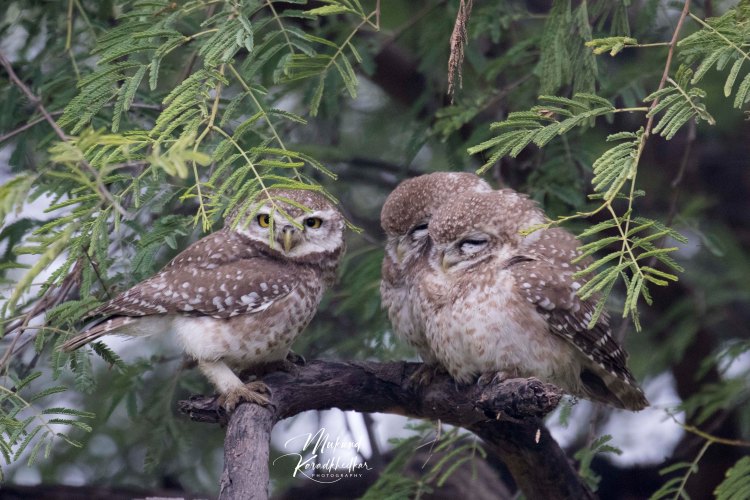 The image features a Spotted Owlet. This is often referred to as Jungle Owlet. The Spotted Owlet is a small owl that breeds in tropical Asia, from India to Southeast Asia.